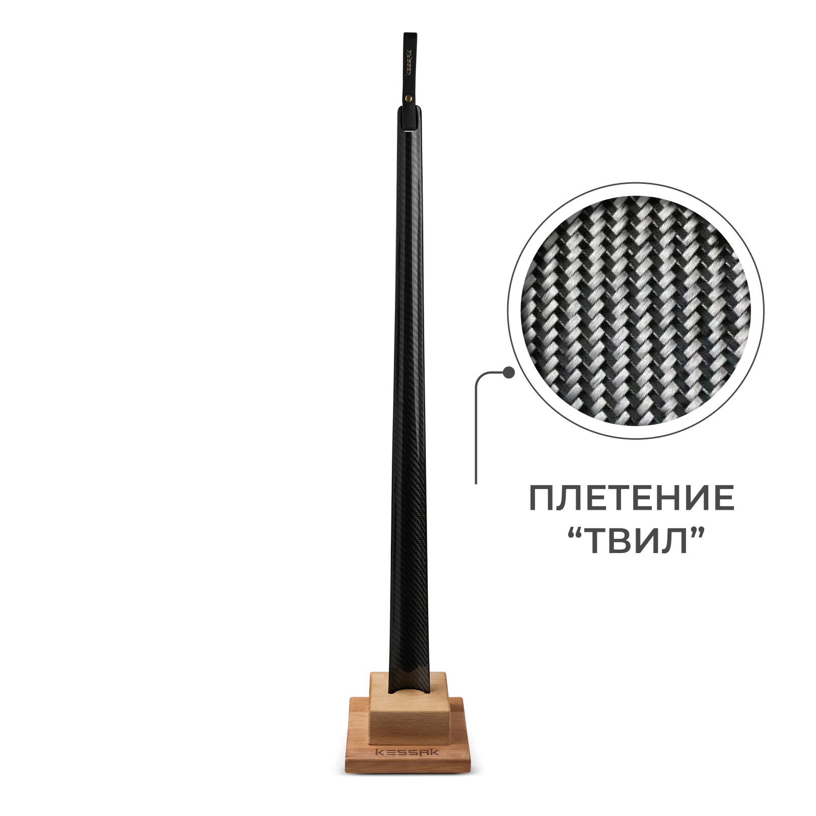 Дизайн ложки продуман до мелочей: эргономичная форма обеспечивает удобный хват, а аккуратная кожаная петелька позволяет хранить её в шкафу или на стене. Углеродное волокно не только придает ложке благородный вид, но и делает её устойчивой к деформациям при частом использовании.