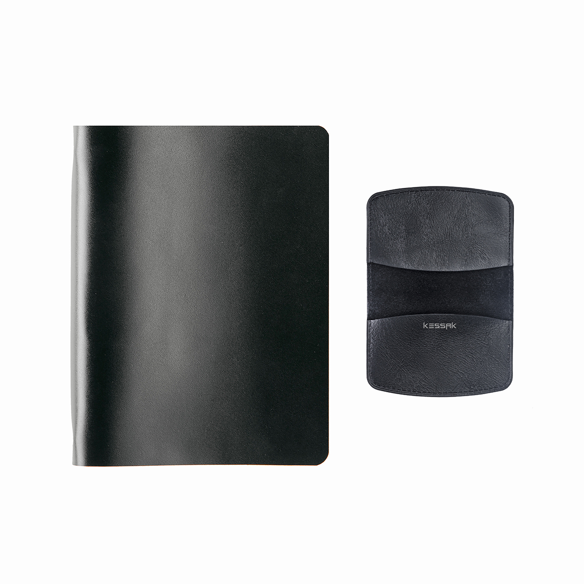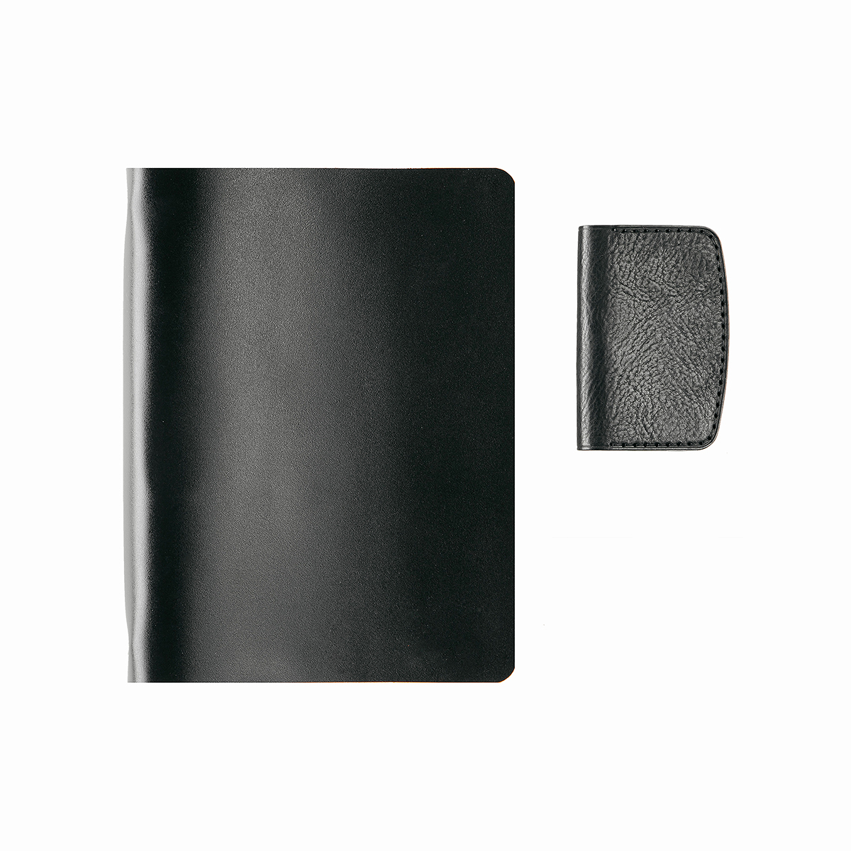 Подарочный набор состоит из ежедневника и картхолдера. Ежедневник — это стильный аксессуар, выполненный из натуральной кожи. Он имеет классический чёрный цвет и сменный блок из 100 страниц формата А5 плотностью 80 гр/м².