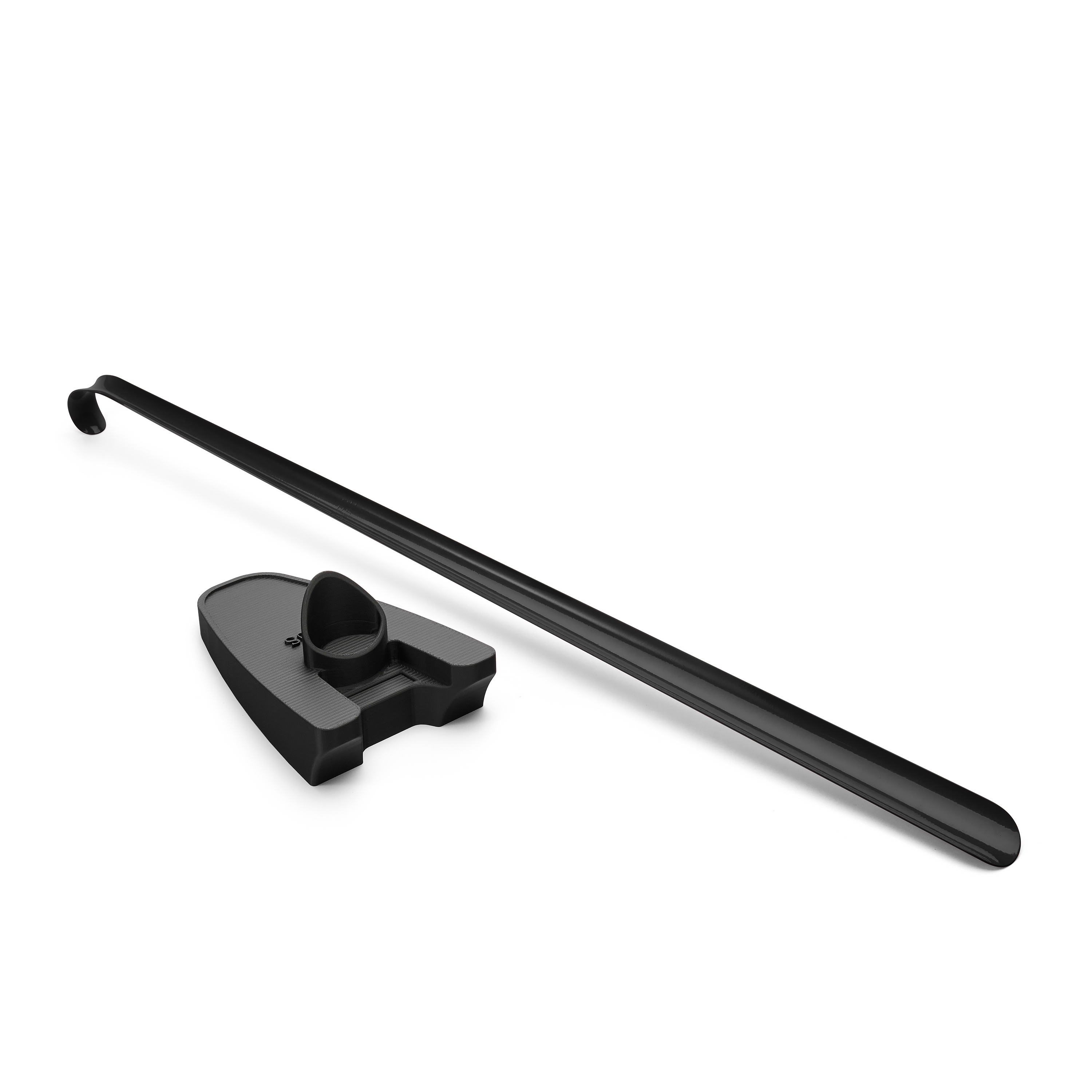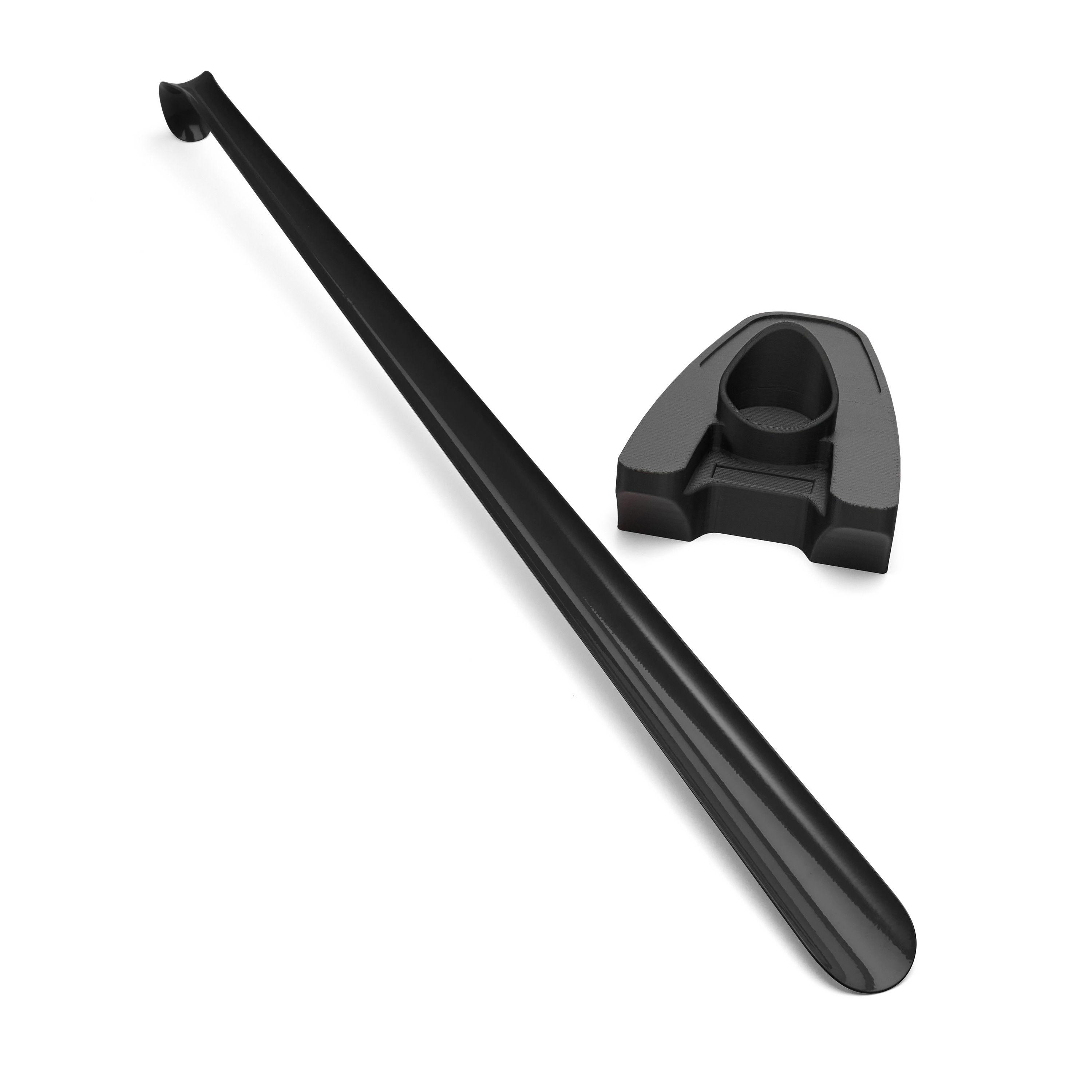 Матовая чёрная поверхность с декоративным покрытием подчёркивает лаконичный стиль изделия благодаря этому ложка вписывается в любой интерьер прихожей. Декор выполняет эстетическую функцию, поэтому требует аккуратного обращения: при падениях или контакте с твёрдыми поверхностями возможно появление сколов, что характерно для декоративных покрытий.